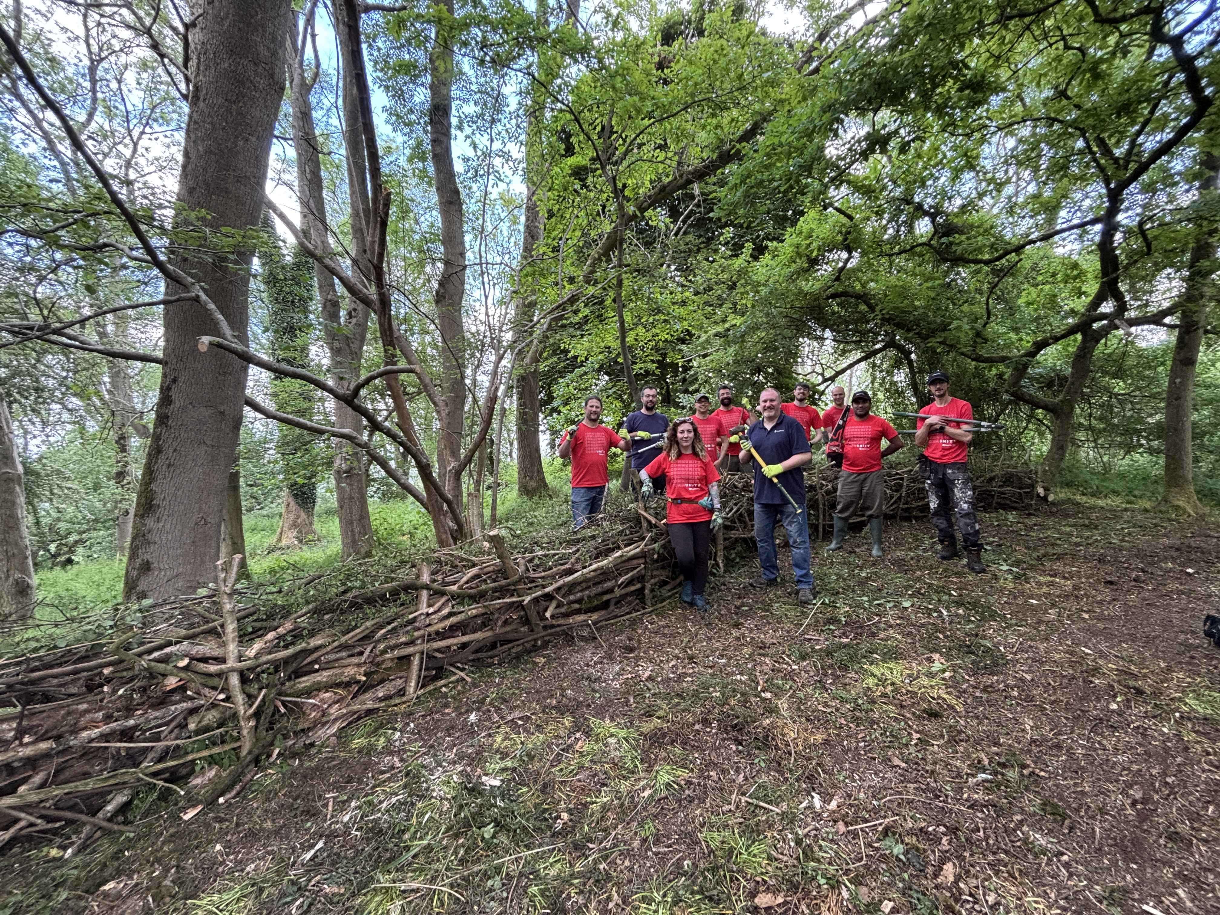 The team build a "Dead" Hedge, which was around 20 metres long and is a great natural feature for this area.